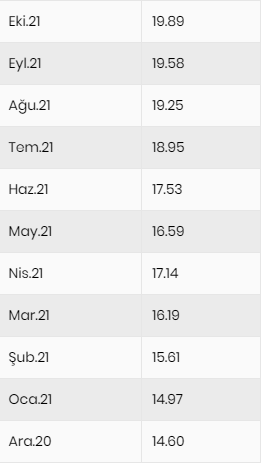 TÜFE'deki yıllık değişimin son 2 yıldaki seyri: