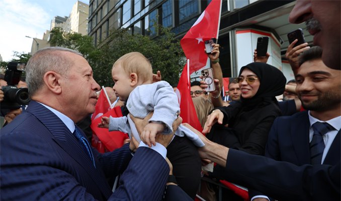 Erdoğan, Birleşmiş Milletler (BM) 80. Genel Kurulu'na katılmak ve çeşitli temaslarda bulunmak üzere geldiği ABD'nin New York kentindeki Türkevi'ne girişinde sevgi gösterileriyle karşılandı.