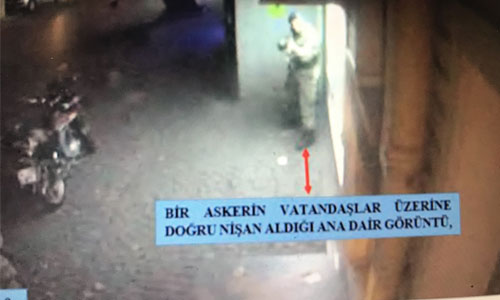 "Bunun üzerine komutan bize dönerek, askerlere 'vurun bu vatan hainlerini kurşunlayın' dedi. Bize döndü ve silahla ateş etmeye başladı. Askerler de ateş ettiler. Özellikle öğrenci apoletleri olan askerler vatandaşa silahla ateş ettiler. Bir iki dakika sonra silahla ateş etme kesildi. Bize 'evlerinize girin yoksa sizi vuracağız' dediler. Biz bir kaç dakika kadar burada kaldık. Burada kısa boylu bir komutan, sürekli Cumhurbaşkanına küfür ediyordu. Sonra bizim içimizdeki arkadaşlar dayanamadılar, tepki gösterdiler. Bunun üzerine direkt bize doğru gelerek silahla ateş ettiler. "