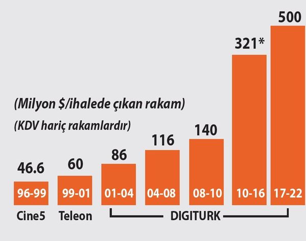 Dolar kurunun ihale tarihindeki 3.36 TL’den alınması durumunda yayıncı kuruluş ilk yıl 250 milyon dolar karşılığı 840 milyon TL ödeyecek.