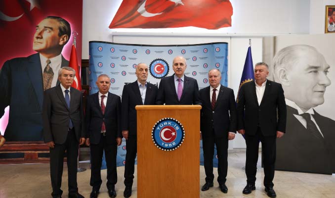 TBMM Başkanı Numan Kurtulmuş, Türkiye İşçi Sendikaları Konfederasyonu (TÜRK-İŞ) Genel Başkanı Ergün Atalay ve TÜRK-İŞ Yönetim Kurulu ile bir araya geldi. TÜRK-İŞ Genel Merkezi'ndeki görüşmenin ardından basın mensuplarına açıklamada bulunan Kurtulmuş, "Türkiye'nin en büyük sivil toplum kuruluşlarından birisi olan TÜRK-İŞ, gerçekten çalışma hayatında önemli etkileri olan değerli bir sendikamızdır. Bu sendikal mücadele de verdikleri gayretli mücadeleden dolayı bir kere daha onlara teşekkür etmek istiyorum. Türkiye'de çalışma hayatının, iş barışı içerisinde devam etmesinin en önemli unsurlarımızdan biri olduğunu sürekli ifade ediyoruz. Türkiye; gelişen, büyüyen, kalkınmakta olan bir ülkedir. Hiç şüphesiz Türkiye'nin bu kalkınma mücadelesinde en ağırlıklı pay da emekçi, işçi kardeşlerimizindir. Dolayısıyla işçi kardeşlerimizin Türkiye'nin kalkınmasından, gelişmesinden, refahından yeterince pay alması, hepimizin ortak hedeflerinden birisi olması gerekir. Hem ekmeği büyütmek hem de bu ekmeği hakça paylaşmak; ekonomik kalkınmanın, toplumsal ve siyasal istikrarın olmazsa olmaz temel unsurlarından birisidir" dedi.