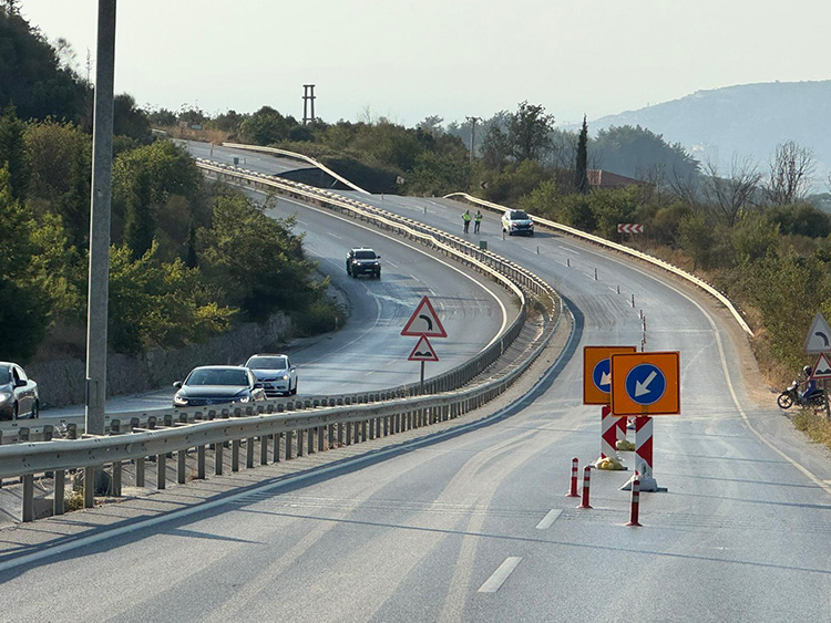 Kuşadası-Söke kara yolu Yaylaköy mevkisi Kuşadası istikametinde yolda çökme meydana geldi.