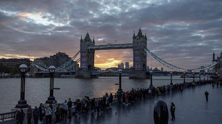 Kraliçe Elizabeth’in 14 Eylül Çarşamba günü Buckingham Sarayı’ndan Westminster Hall’e getirilen naaşı, 19 Eylül Pazartesi günü düzenlenecek cenaze törenine kadar halkın ziyaretine açılmıştı. Parlamento binasındaki Westminster Hall’de katafalka konulan Kraliçe Elizabeth’in tabutunu görmek isteyen on binlerce kişi, yaklaşık 8 kilometre uzunluğunda kuyruk oluşturdu.