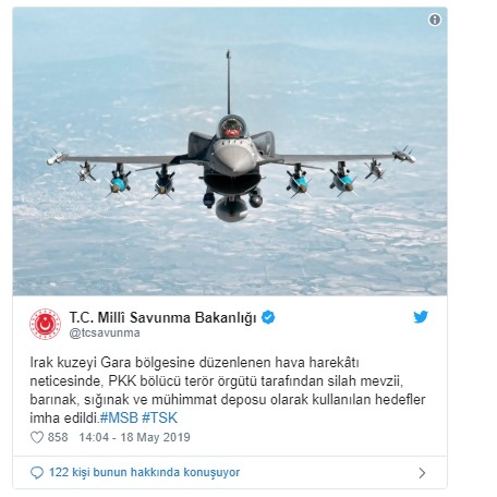 Milli Savunma Bakanlığının Twitter adresinden yapılan açıklamaya göre, Irak'ın kuzeyindeki Gara bölgesine hava harekatı düzenlendi.