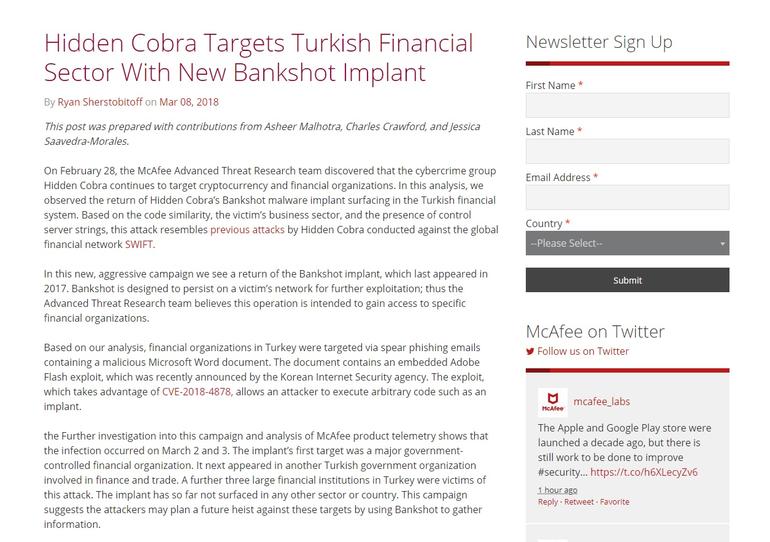 McAfee'nin yayımladığı rapora göre, saldırı sırasında hackerların Türkiye'deki finans ve hükumet kuruluşlarını virüslü bir kripto-para sitesine yönlendirerek hassas bilgileri çalma girişiminde bulunduğu ortaya çıktı.