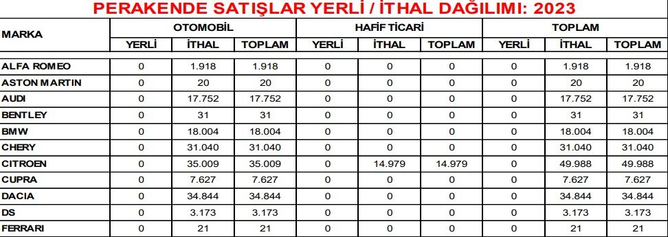 Hangi araçların ne kadar satıldığına bakıldığında ise şu detaylar öne çıkıyor: