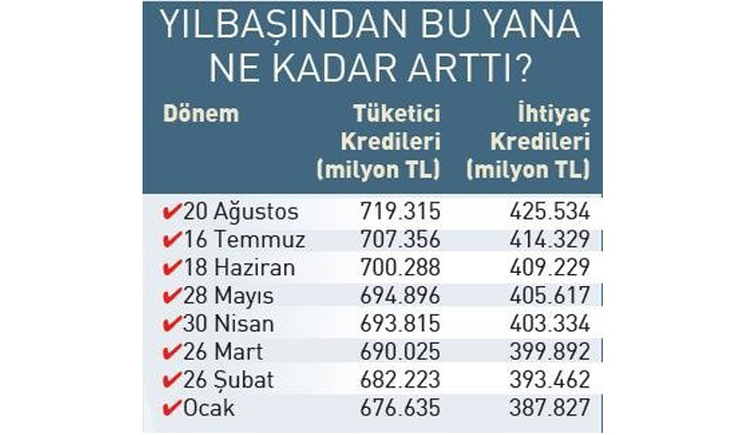 Ekonomi yönetimi krediler için ayrılan karşılıkların artırılması üzerinde de çalışıyor. İç talebin canlı olmasının enflasyonist bir baskı yaratacağından endişe duyulurken, son dönemde alınan kredilerin nasıl kullanıldığına da bakılacak.