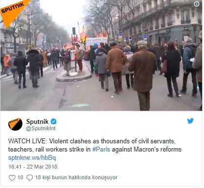 Fransa'da Cumhurbaşkanı Emmanuel Macron'un emekçilerin kazanılmış haklarını elinden almaya yönelik tasarruf tedbirlerine karşı devlet memurları, öğretmenler, hava trafiği kontrol memurları ve demiryolları işçileri greve gitti. Paris ve Nantes kentlerinde polisle protestocular arasında çatışmalar yaşandı.