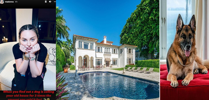 Gunther isimli Alman çoban köpeğinin, daha önce pop yıldızının sahip olduğu Miami'deki konağı Madonna'nın sattığı fiyatın üç katına satışa sunduğu bildirilmişti.