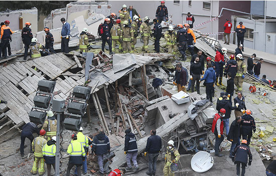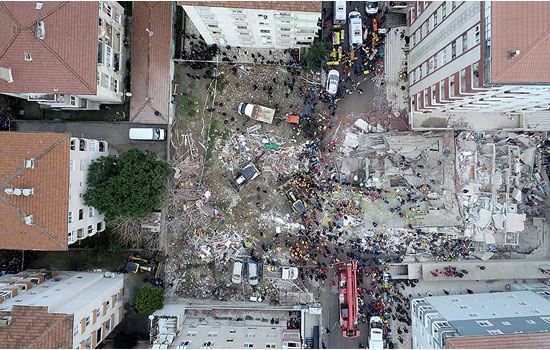 "İlk dakikadan itibaren İstanbul'daki bütün arkadaşlarımız, hem AFAD olsun Sayın Valimizin başkanlığında, hem Çevre ve Şehircilik birimleri, hem emniyetimiz olsun, jandarmamız herkes diğer civar illerden de gerekli takviyelerle gelen arama kurtarma ekipleriyle birlikte de gerekli müdahaleleri yapmaya çalışıyoruz. Elbette ki bu olaylardan da çıkaracağımız, adım atmamız gereken adımları millet olarak, ülke olarak hep birlikte atmaya çalışacağız. Şu andaki tek gayretimiz ve tek gayemiz göçük altındaki vatandaşlarımızı inşallah salimen çıkarabilmektir. Hem ailelerine geçmiş olsun diyorum hem ülkemize geçmiş olsun diyorum."