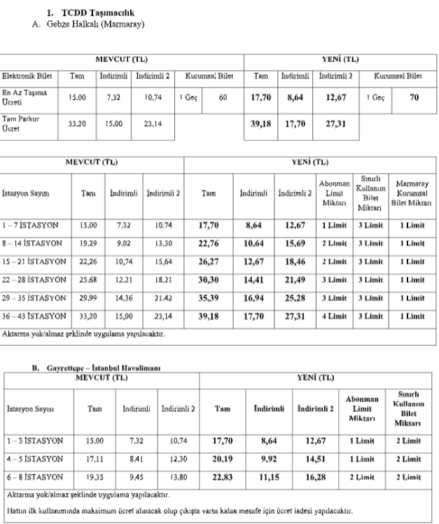 Bugün ise Türkiye Cumhuriyeti Devlet Demiryolları (TCDD)'na bağlı marmaray ve İETT bünyesindeki mertobüse de yüzde 18 zam yapıldı.