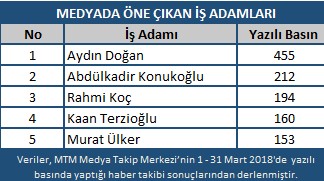 İş dünyasının basında en çok konuşulan iş adamı Aydın Doğan oldu