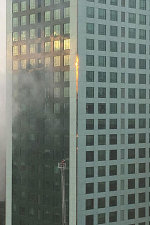 Merdivenli araçlarla yapılan müdahalenin yetersiz olmasından dolayı itfaiye ekipleri binanın camlarını kırarak yangını söndürmeye çalıştı. Ancak alevler üst katlara doğru yükselmeye devam etti.