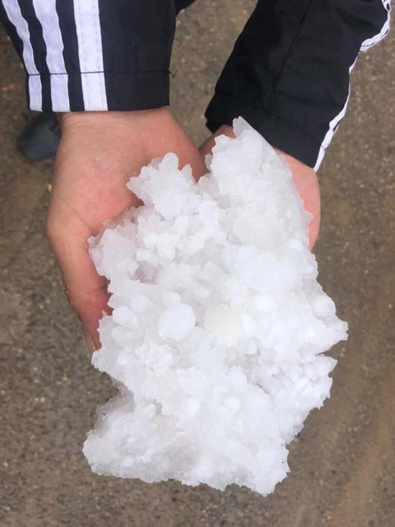 Öte yandan merada hayvanlarını otlatan besiciler, dolu nedeniyle köylerine dönmek zorunda kaldı.