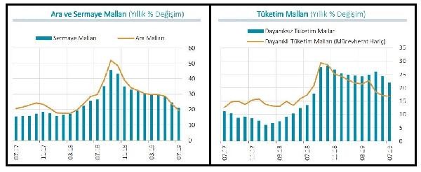 - Ara malı grubu fiyatlarındaki aylık düşüşte demir-çelik, temel kimyasal ürünleri, tekstil iplik ve elyafları ve plastik ürünler belirleyici olurken; sermaye mallarında diğer özel ve genel amaçlı makineler ile bilgisayar ve metal yapı ürünlerinin etkisi öne çıktı.