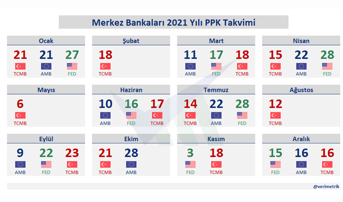 Finansgundem.com'un yaptığı derlemelere göre, Merkez Bankası'nın bir sonrakı PPK toplantısı 15 Nisan'da yapılacak 4. toplantıdan sonra gerçekleştirelecek Mayıs ayı toplantısı ise ayın 6'sında gerçekleştirilecek. 17 Haziran, 14 Temmuz, 12 Ağustos, 23 Eylül, 21 Ekim, 18 Kasım ve 16 Aralık diğer toplantı tarihleri.