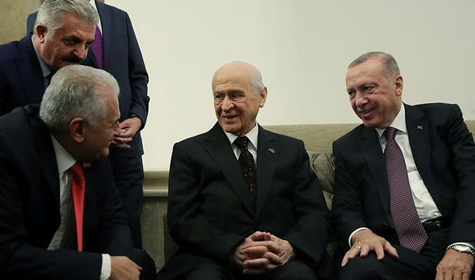 Cumhurbaşkanı Recep Tayyip Erdoğan, Meclis'te, MHP Genel Başkanı Devlet Bahçeli ile bir araya geldikleri anlar kameralara yansıdı. İki lider arasındaki samimi diyalog dikkat çekti.