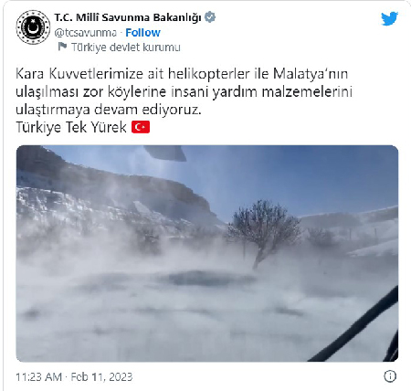 Buna göre, Hava Kuvvetleri Komutanlığına ait helikopterler, karadan ulaşımın mümkün olmadığı deprem bölgesindeki köylere yardım malzemesi taşımaya devam ediyor.