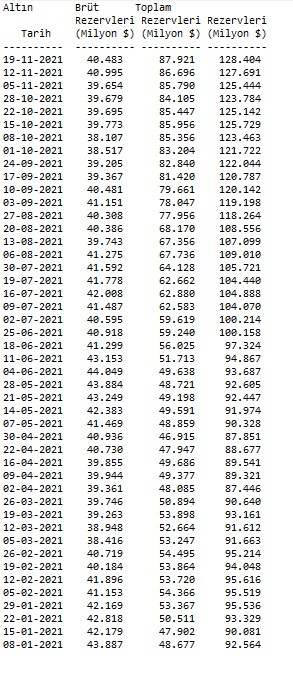 Böylece Merkez Bankası toplam rezervleri 127 milyar 691 milyon dolardan 128 milyar 404 milyon dolar seviyesine geldi.