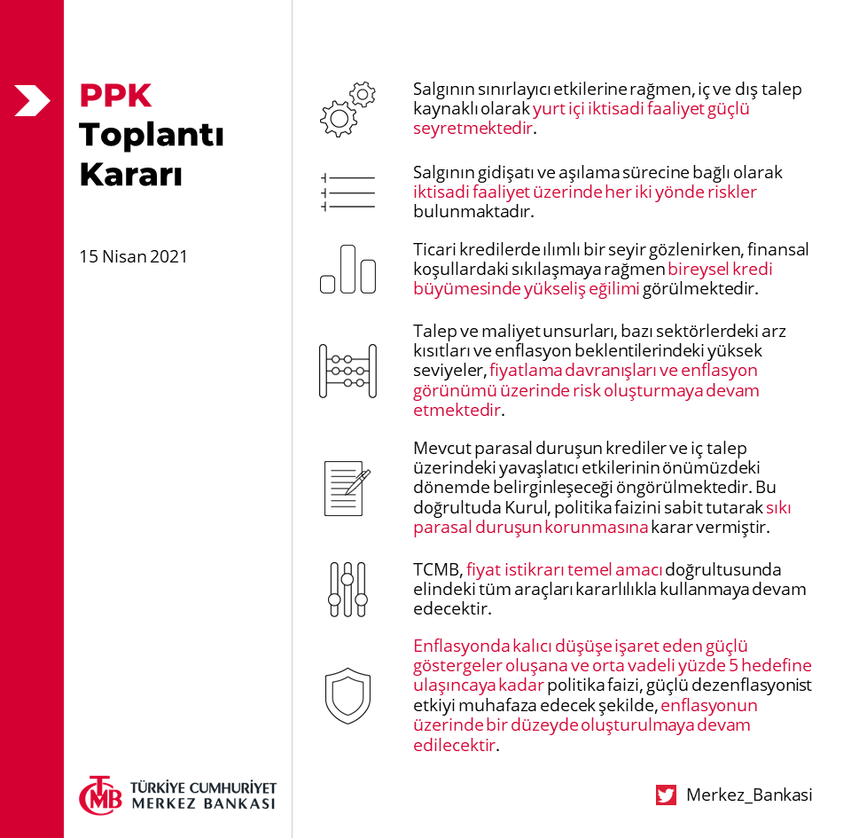 Mart ayında Naci Ağbal başkanlığında alınan 200 baz puanlık faiz artışı ile politika faizi yüzde 19 oranına yükseltilmişti. Mart ayında yapılan toplantı sonrasında Naci Ağbal görevden alınarak yerine Şahap Kavcıoğlu atanmıştı. PPK'da ayrıca kurul üyeliklerinde de değişiklikler oldu.