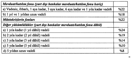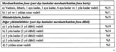 Resmi Gazete'de bugün yayınlanan Zorunlu Karşılıklar Hakkında Tebliğ'e göre; vadesiz, ihbarlı, 1 aya kadar, 3 aya kadar, 6 aya kadar ve 1 yıla kadar vadeli mevduat/katılım Fonu yabancı para yükümlülükler zorunlu karşılık oranı %19'dan %22'ye çıkarıldı. 1 yıl ve 1 yıldan uzun vadeli yabancı para yükümlülükler için zorunlu karşılık oranı %15'ten %18'e çıkarıldı.