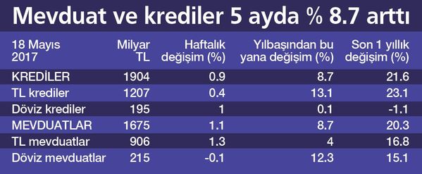 MEVDUAT VE KREDİLER 5 AYDA % 8.7 ARTTI