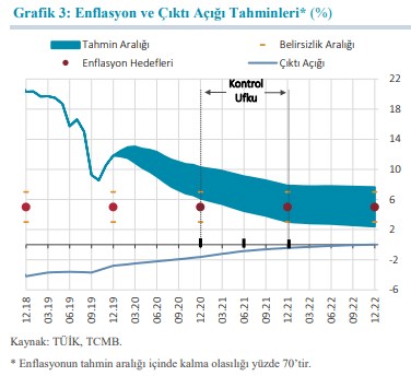 Enflasyonun, yüzde 70 olasılıkla, 2020 yılı sonunda yüzde 6,2 ile yüzde 10,2 aralığında (orta noktası