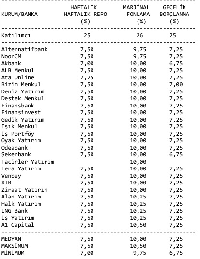 Ankete katılan 26 analistten 25'i marjinal fonlama oranında indirime gidileceği görüşünü savunurken, 19'u 50 baz puan, 4'ü 25 baz puan, 2'si ise 75 baz puan indirim kararı alınacağı öngörüsünde bulundu.