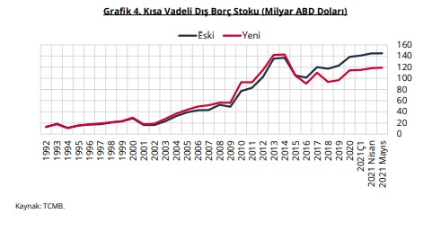 sonucu, uzun vadeli mevduat tutarları kısa vadeli dış borç tablosundan çıkarılmıştır.