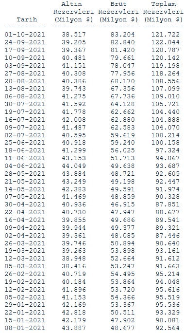 Böylece Merkez Bankası toplam rezervleri 122 milyar 44 milyon dolardan 121 milyar 722 milyon dolar seviyesine geldi.