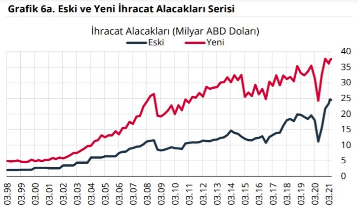 Çalışma ile çeyreklik dönemler itibarıyla toplam vadeli ithalatın ve ihracatın en az yüzde 80'ini temsil eden firmalardan ticari alacak ve borçlarını yurt içi ve yurt dışı ayrımında, yabancı para kompozisyonlarını da içerecek şekilde raporlamaları talep edilmiştir. Doğrudan raporlama yöntemiyle elde edilen ticari kredi borç ve alacak verileri öncelikle tam kapsayıcılık sağlayacak şekilde tümevarım yöntemiyle genişletilmiş, daha sonra da girdi oluşturdukları istatistiklere geriye dönük olarak yansıtılabilmeleri için geçmiş zaman serileri üretilmiştir. Buna göre; mayıs ayı itibarıyla ihracat alacakları 13,1 milyar dolar artarak 24,5 milyar dolardan 37,6 milyar dolara çıkmış, ithalat borçları ise 25,1 milyar dolar azalarak 56,5 milyar dolardan 31,4 milyar dolara gerilemiştir.