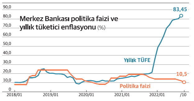 Dünay'dan Şebnem Turhan'ın konuyla ilgili haberi şöyle: Merkez Bankası ekim ayı Para Politikası Kurulu (PPK) toplantısında 100 baz puanlık beklentilerin üzerinde 150 baz puan daha indirim yaptı ve politika faizini yüzde 12’den yüzde 10,5 seviyesine çekti.