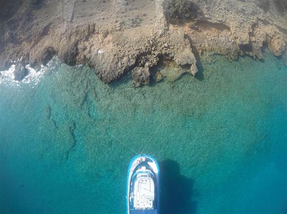 Daha sonra kıyıdan yaklaşık 2 kilometre açıkta bulunan Dana Adası’nın çevresinde çalışmaları sürdürdüklerini belirten Yrd. Doç. Dr. Hakan Öniz, adanın kuzeyine geldiklerinde suyun altından kıyıya kadar uzanan bazı yapılar gördüklerini söyledi. Yard. Doç. Dr. Öniz, "Kafamızı suyun içinden çıkarıp kıyıya çıktığımızda ise çok şaşırdık. Birdenbire karşımıza onlarca çekek yeri çıktı. Muazzam bir duyguydu" diye konuştu.