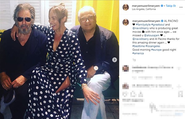 Los Angeles'da birlikte akşam yemeği yiyen Meryem Uzerli ve Al Pacino, keyifli bir sohbet gerçekleştirdi.