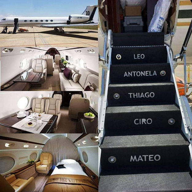Uçağın kuyruğuna Lionel Messi'nin isteğiyle 10 numarası yazıldı. Ayrıca uçağın merdivenlerine de aile üyeleri Leo, Antonella (eşi), Thiago, Ciro ve Mateo'nun isimleri yazıldı.
