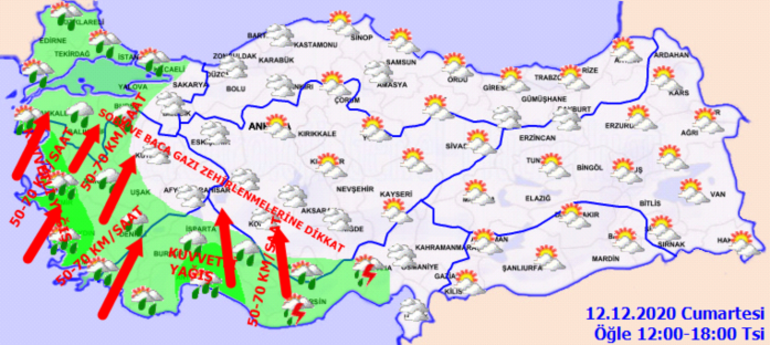 Yapılan son değerlendirmelere göre; Marmara güneyi, İç Ege, Göller Yöresi, İç Anadolu'nun güney ve batısında beklenen kuvvetli güneyli rüzgarların meydana getirebileceği soba ve baca gazı zehirlenmelerine karşı ilgililerin ve vatandaşların tedbirli olmaları gerekmektedir.