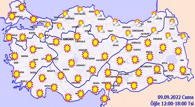 Meteoroloji Genel Müdürlüğü tarafından yapılan son değerlendirmelere göre: Ülkemizin kuzeydoğu kesimlerinin parçalı bulutlu, diğer yerlerin az bulutlu ve açık geçeceği tahmin ediliyor.