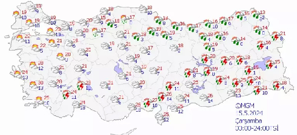 Parçalı ve az bulutlu, zamanla parçalı ve çok bulutlu yarın öğle saatlerinden sonra batısı ile iç kesimleri yerel sağanak ve gök gürültülü sağanak yağışlı