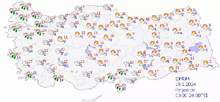 Meteoroloji Genel Müdürlüğü'nün son hava durumu değerlendirmelerine göre Tunceli, Bingöl, Muş, Erzurum ve Kars çevrelerinin karla karışık yağmur ve kar yağışlı geçeceği tahmin ediliyor. Marmara'da ise Sakarya ve Bilecik hariç sağanak yağış görülecek. Kuzey, İç ve doğu kesimlerde gece ve sabah saatlerinde pus ve yer yer sis görülmesi bekleniyor. Doğu Karadeniz’in iç kesimleri ile Doğu Anadolu’nun kuzey ve doğusunda çığ tehlikesi bulunmaktadır.