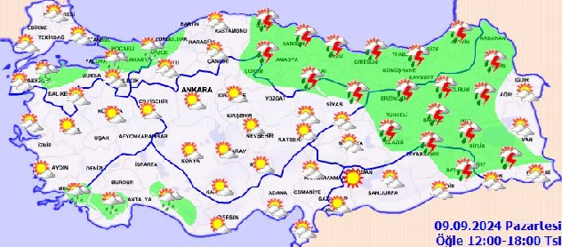 Meteoroloji Genel Müdürlüğü tarafından yapılan son tahminlere göre: Marmara’nın kuzeydoğusu, Orta ve Doğu Karadeniz, Doğu Anadolu’nun kuzeyi ile Zonguldak, Düzce, Sinop, Tunceli, Elazığ, Bingöl, Muş, Bitlis, Batman, Siirt çevreleri, Balıkesir'in kuzeyi, Muğla'nın doğusu, Antalya'nın iç kesimleri, Diyarbakır’ın doğusu ve Van’ın güney kesimlerinin yerel sağanak ve gök gürültülü sağanak yağışlı geçeceği tahmin ediliyor.