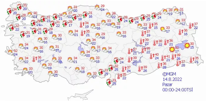 Meteoroloji 14 Ağustos hava durumu raporunu yayımladı. Buna göre, İstanbul dahil 22 ilde sağanak yağmur bekleniyor. İstanbul'da öğle saatlerinden sonra Üsküdar, Kadıköy, Maltepe ilçeleri; gece saatlerinde ise il genelinde kısa süreli sağanak yağmur görülmesi tahmin ediliyor. İşte il il hava durumu raporu...