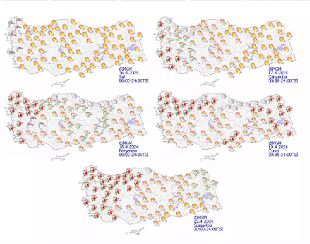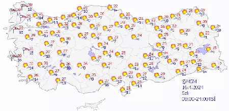Meteoroloji Genel Müdürlüğü tarafından 16 Nisan hava durumu tahminleri açıklandı. Yapılan son değerlendirmelere göre bugün: Ülkemiz genelinde yağış beklenmiyor. Trakya ile güneydoğu kesimlerin parçalı bulutlu, diğer yerlerin az bulutlu ve açık geçeceği tahmin ediliyor. Doğu Karadeniz'in iç kesimlerinin yüksekleri ile Doğu Anadolu’nun yüksek ve dik yamaçlarında çığ tehlikesi devam etmektedir. Haftalık raporda ise hafta sonuna doğru yurt genelinde sağanak yağış bekleniyor. Perşembe günü Kuzey ve Batı'dan gelecek olan soğuk hava dalgasıyla sıcaklıklar 8-9 dereceye kadar düşecek. Yağışlar, hafta sonu yurt genelinde etkili olacak.