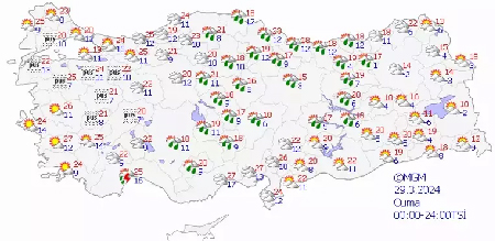 Meteoroloji Genel Müdürlüğü tarafından yapılan son değerlendirmelere göre; Ülkenin doğusu ve batısında önümüzdeki günlerde güneşli bir havanın hakim olması beklenirken, bugün Karadeniz'in bir kısmı ve İç Anadolu Bölgesi'nin yağışlı olması bekleniyor. Yurt genelinin parçalı ve çok bulutlu, İç Anadolu’nun güney ve doğusu, Orta ve Doğu Karadeniz, Doğu Anadolu’nun batısı ile Antalya, Kastamonu ve Sinop çevrelerinin sağanak ve yer yer gök gürültülü sağanak yağışlı geçeceği tahmin ediliyor. Sabah ve gece saatlerinde Marmara, İç Ege ve Batı Karadeniz’in iç kesimlerinde yer yer pus ve sis bekleniyor. Güneybatı kesimlerde yer yer toz taşınımı görüleceği tahmin ediliyor. Doğu Karadeniz’in iç kesimleri ile Doğu Anadolu’nun kuzey ve doğusunda çığ tehlikesi bulunmaktadır.
