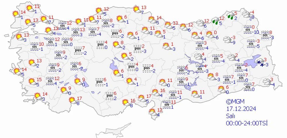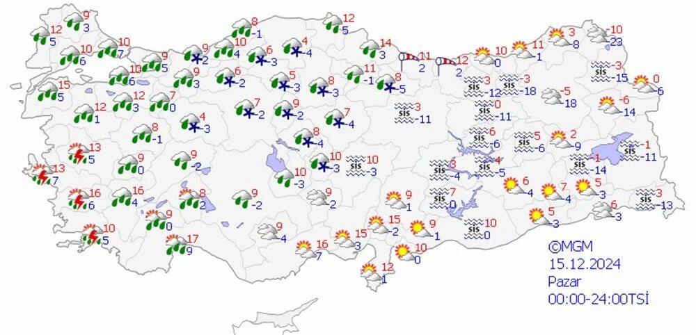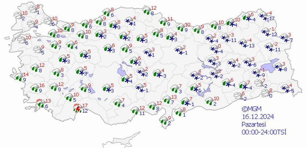 16 ARALIK PAZARTESİ HAVA DURUMU