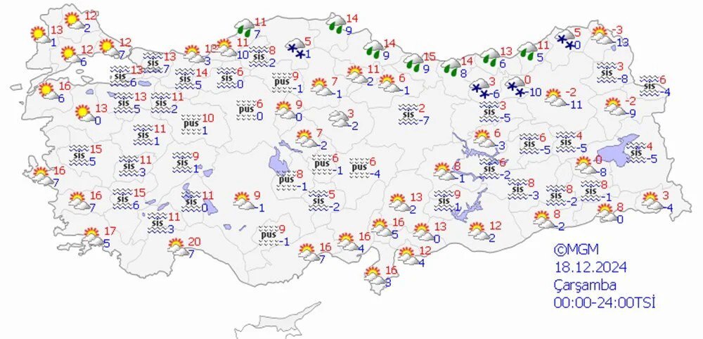 18 ARALIK ÇARŞAMBA HAVA DURUMU