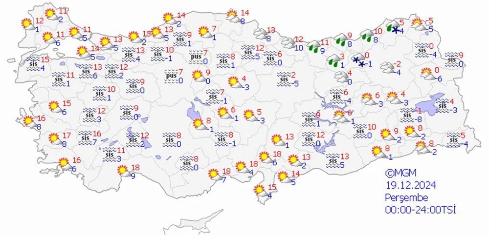 19 ARALIK PERŞEMBE HAVA DURUMU