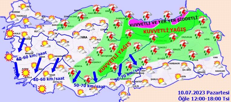 Yağışların; Orta ve Doğu Karadeniz, Sinop, Kastamonu kıyıları, Kayseri, Niğde, Erzincan ve Ardahan çevreleri ile Yozgat'ın doğu, Sivas'ın kuzey ve batı, Erzurum'un kuzey ilçelerinde kuvvetli, Ordu, Giresun, Rize, Artvin çevrelerinde çok kuvvetli ve yer yer şiddetli beklendiğinden yaşanabilecek sel, su baskını, yıldırım, ulaşımda aksamalar gibi olumsuzluklara karşı dikkatli ve tedbirli olunmalıdır.