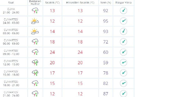 Meteoroloji Genel Müdürlüğünden yapılan uyarıya göre, Doğu Anadolu’nun doğusunda cumartesi görülecek sağanak ve gök gürültülü sağanağın, öğle itibarıyla Erzurum, Kars, Ardahan ve Ağrı çevrelerinde yerel kuvvetli olması bekleniyor.