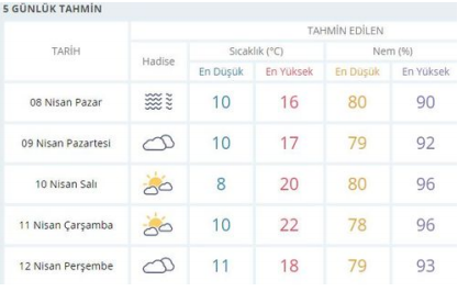 İSTANBUL 5 GÜNLÜKHAVA DURUMU