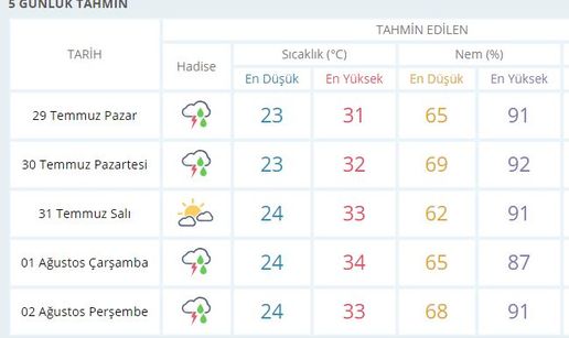 İSTANBUL 5 GÜNLÜK HAVA DURUMU RAPORU